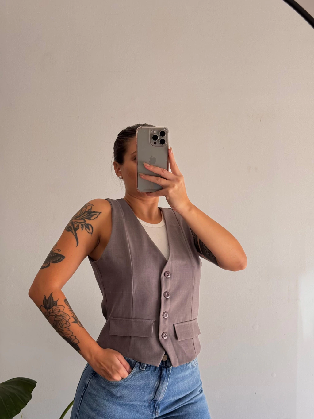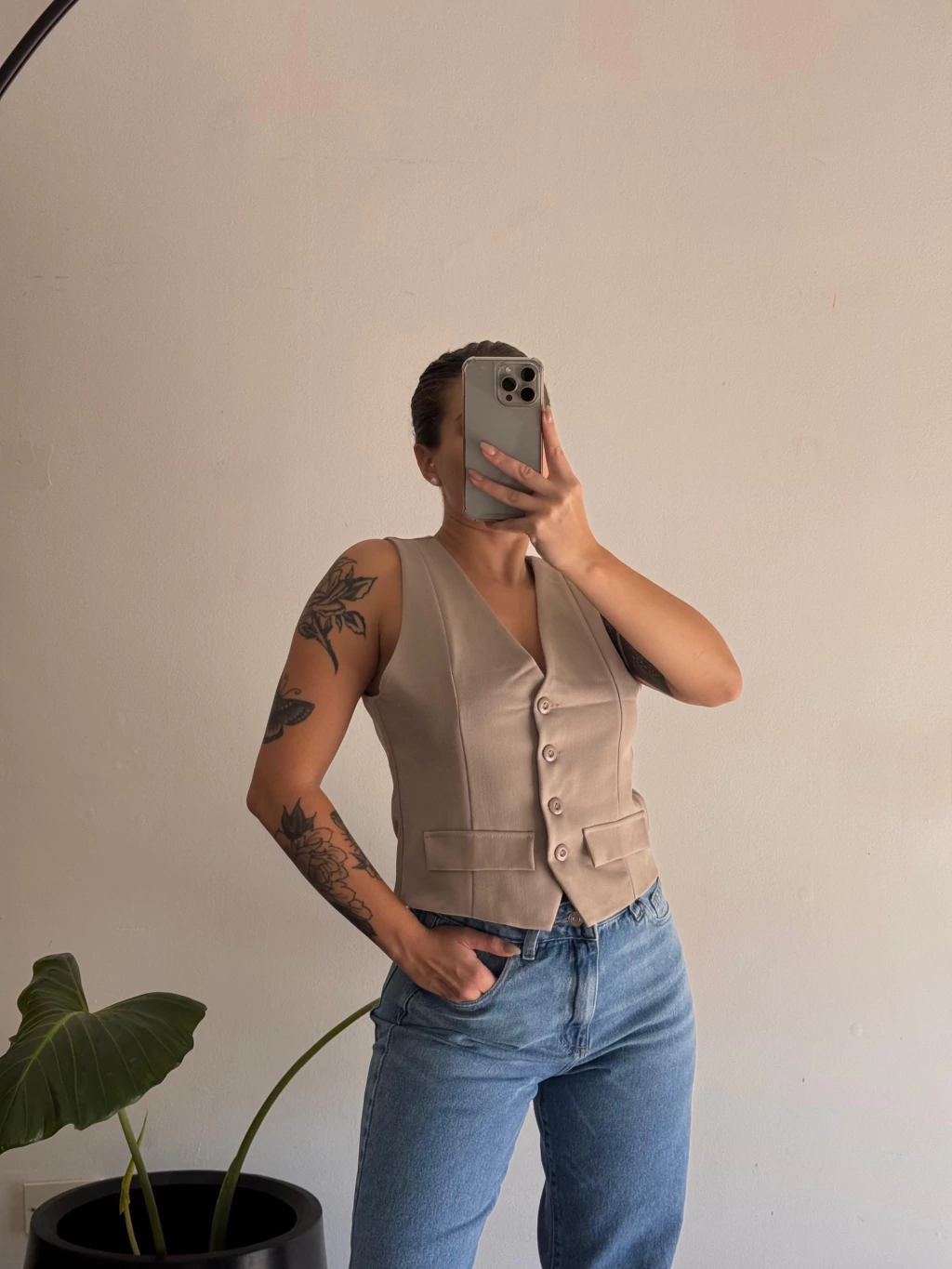 Chaleco sastrero con pinzas y botones.