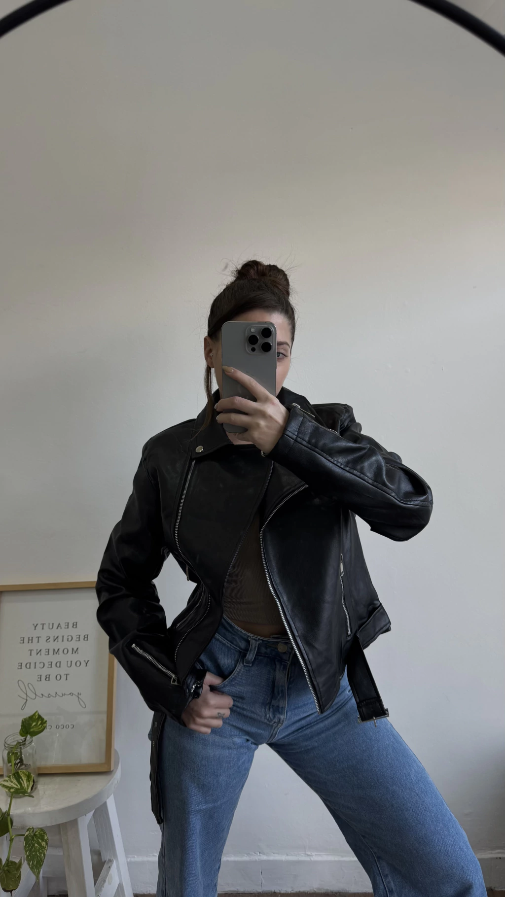 Básica y atemporal. Esta campera de eco cuero es la elegida para completar tus outfits de noche y de día :)