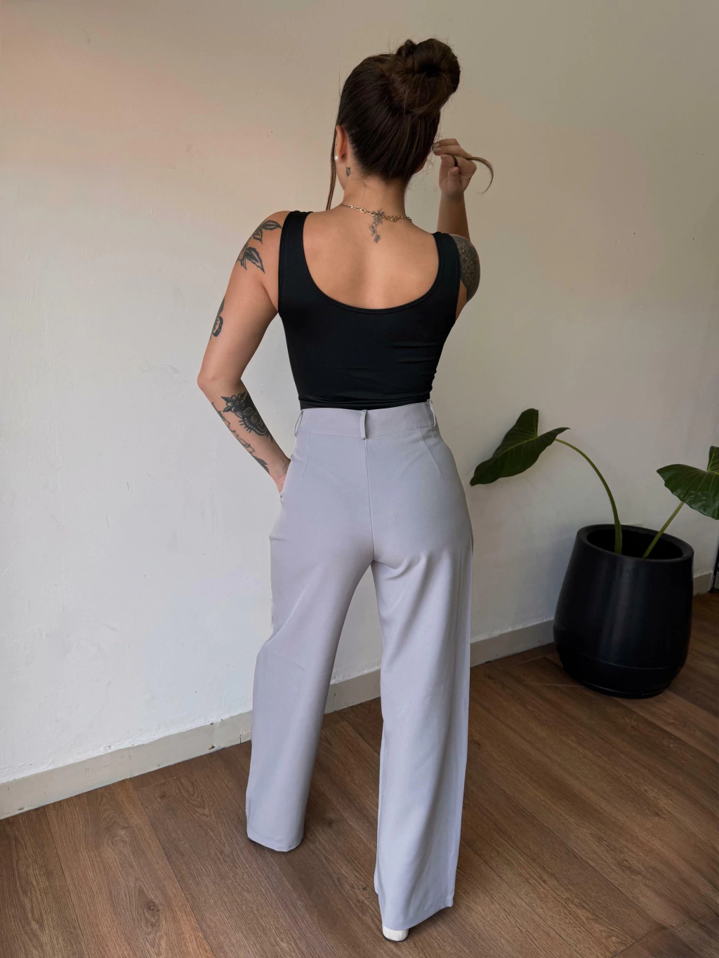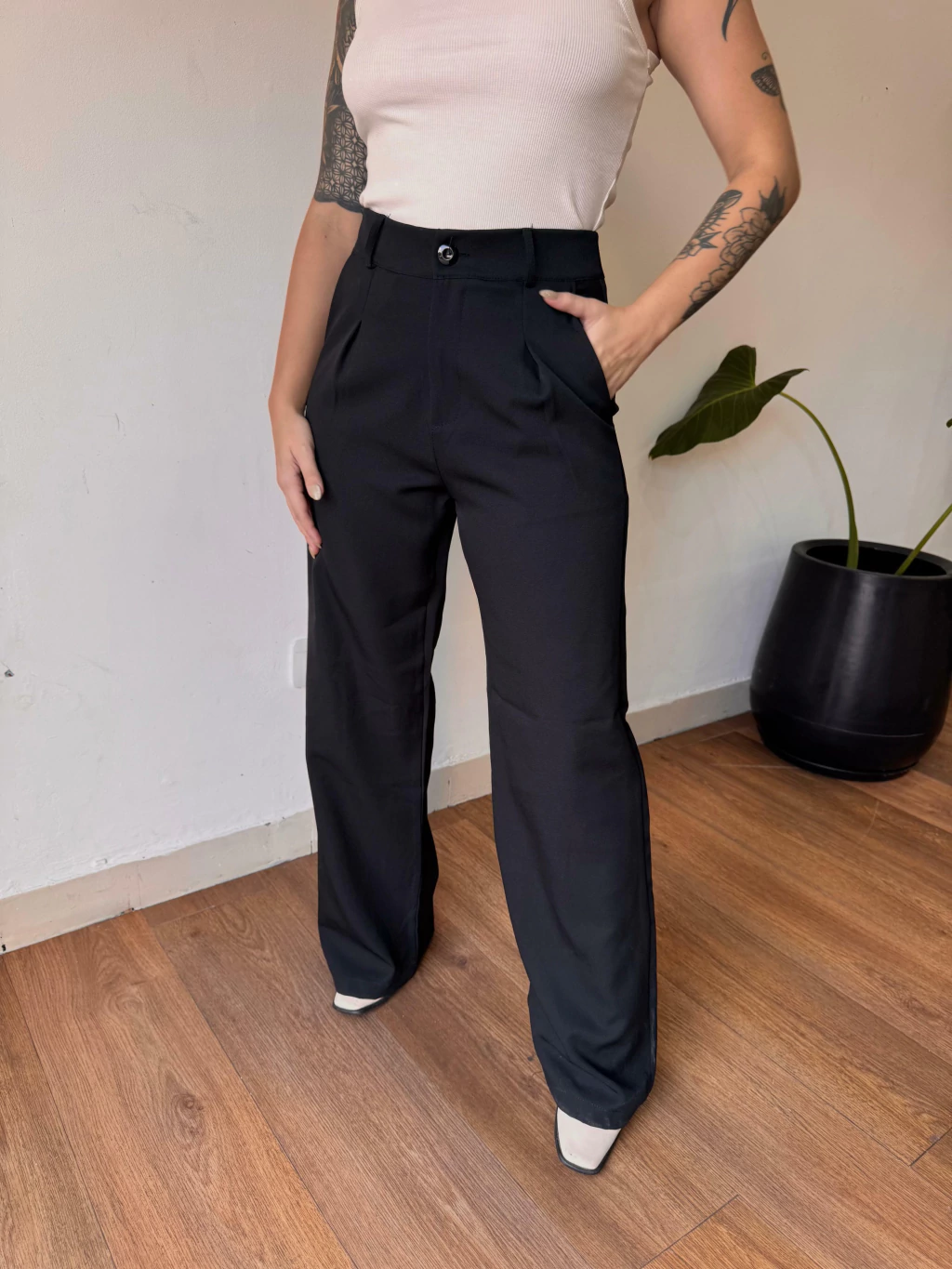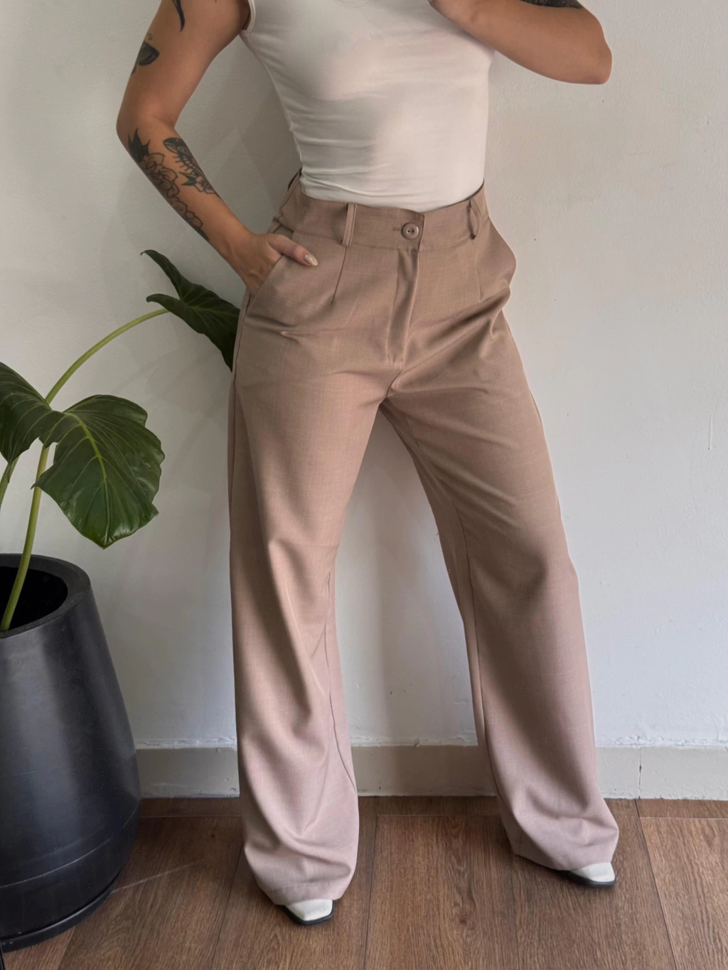 Pantalon sastrero elastisado con pinzas, pasacinto, cierre y boton. Prenda estrella de nuestra coleccion: elegante, comodo y versatil.